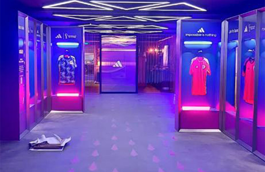 In Doha, we embarked on an enormous project with Adidas at the FIFA World Cup Fan Festival. As a production company, our core focus was on bringing the grand vision to life and executing the impressive setup that left a lasting impression. We used I beams, H beams, metal mesh, acrylic, and smart lighting to turn the vision into reality.