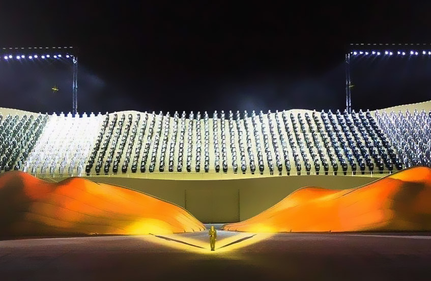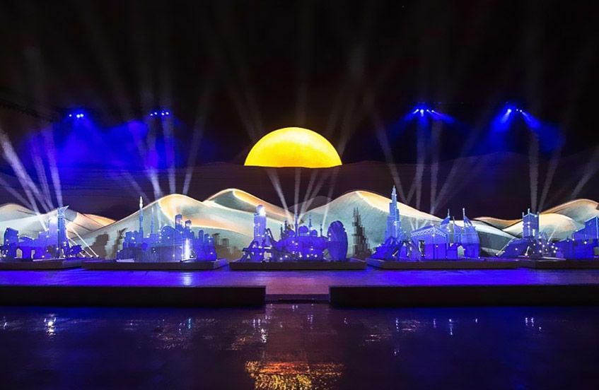 "Every year, on 2 December, the United Arab Emirates National Day is celebrated with great enthusiasm and we had one such project in Abu Dhabi. Imagine facades and stands stretching 100 meters in length and towering 20 meters high. These colossal installations were not static but included moving scenic elements, adding an extra layer of dynamism to the event. To top it off, the outdoor extravaganza featured the incorporation of sand dunes, adding an authentic touch to the celebration.